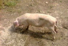 有的豬出現癲癇發作、震顫、麻痹、不能站立等神經癥狀,最后極度衰竭死亡,病程4~5天。病程2周以上呈亞急性或慢性經過。成年豬也可感染,但多無癥狀;妊娠母豬感染可出現死產,或生出先天感染胎兒,于短期內死亡、失明或后軀運動失調等。