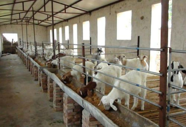 一、野山羊養殖場建設 選擇坐南朝北的地勢,面積稍大,四周筑成...